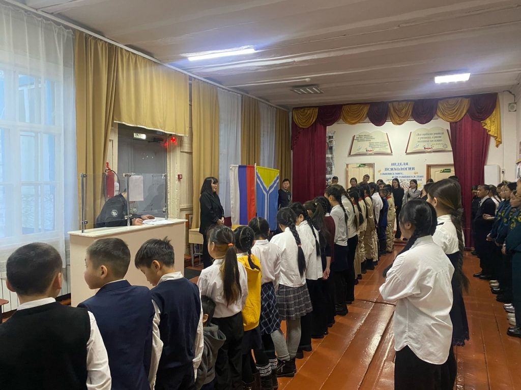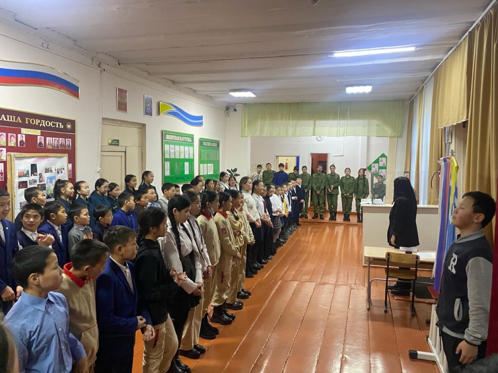 Почетное право поднять флаг предоставлено ученику 8 «б» класса Томбуу Кежику.