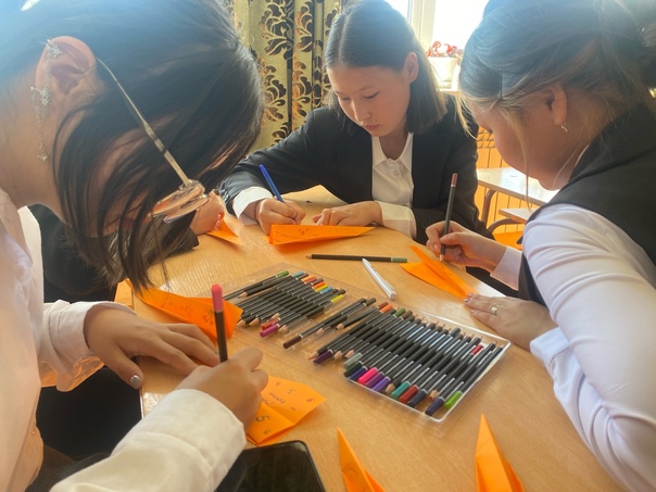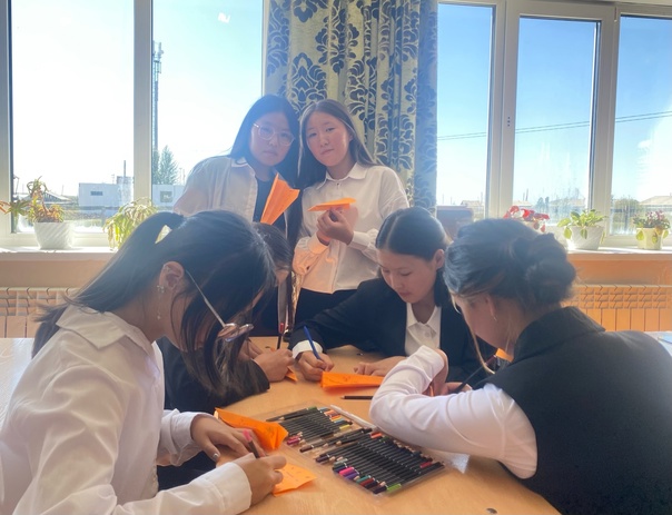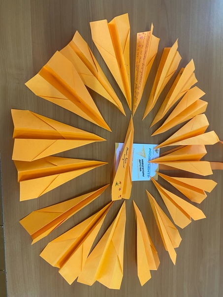 Учащиеся 11 класса сложили из бумаги самолетики и написали напутственные слова и пожелания для первоклассников на первый в их жизни учебный год.