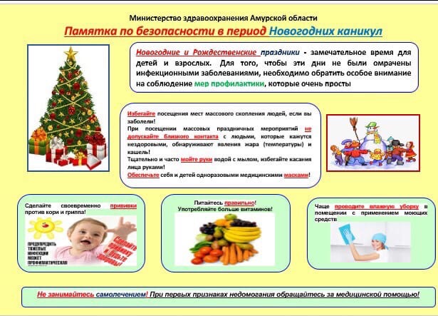 1. Информировать родителей о необходимости соблюдения правил безопасности в период новогодних каникул;
