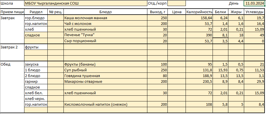 Меню 11 марта