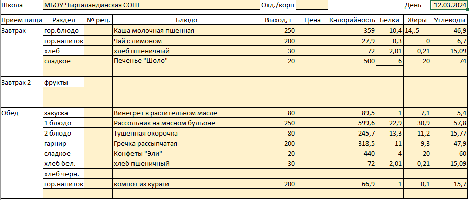 Меню 12 марта