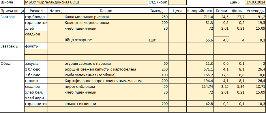 Меню 14 марта