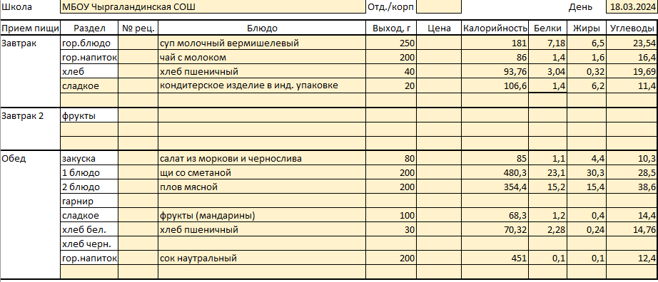 Меню 18 марта