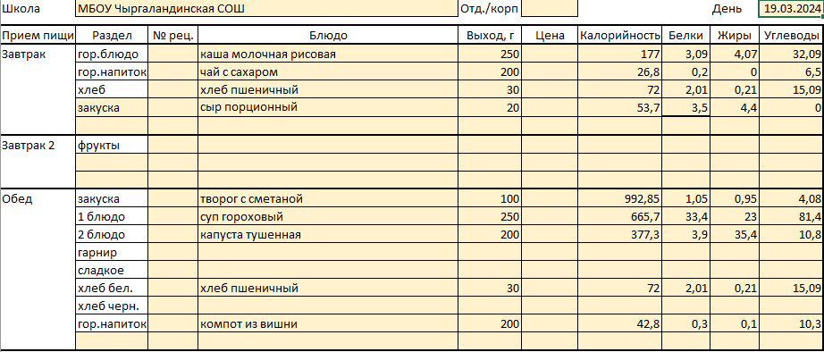 Меню 19 марта