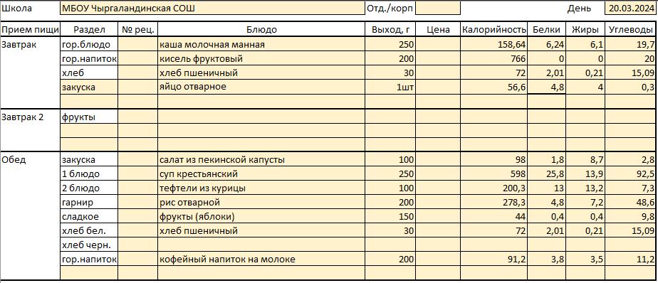 Меню 20 марта
