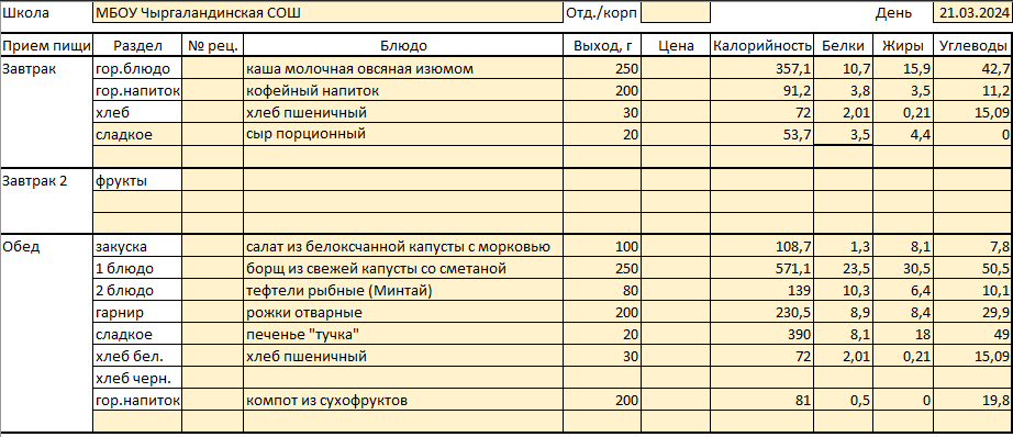 Меню 25 марта