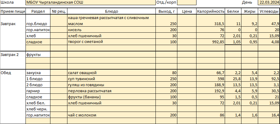Меню 22 марта
