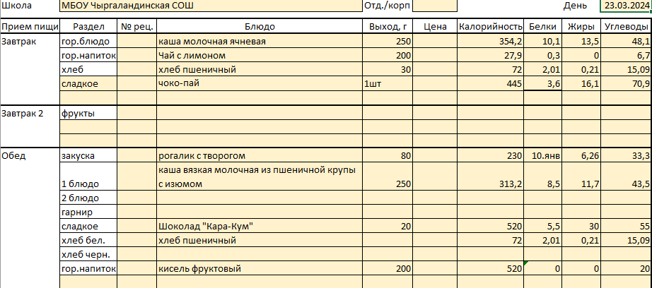 Меню 23 марта
