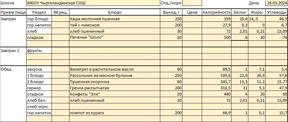 Меню 26 марта