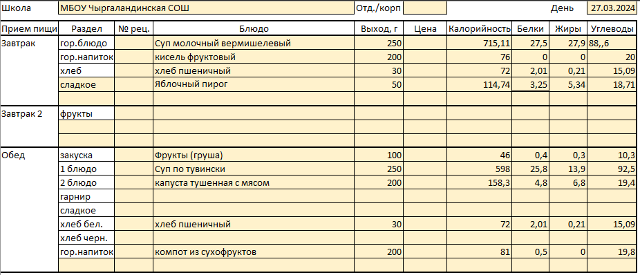 Меню 27 марта