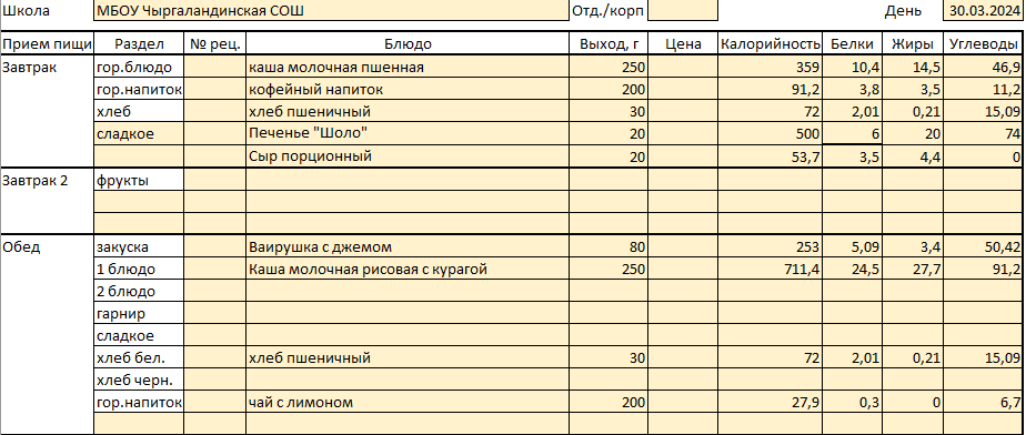 Меню 30 марта