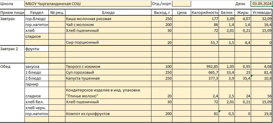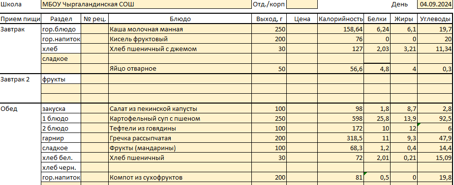 Меню на 4 сентября
