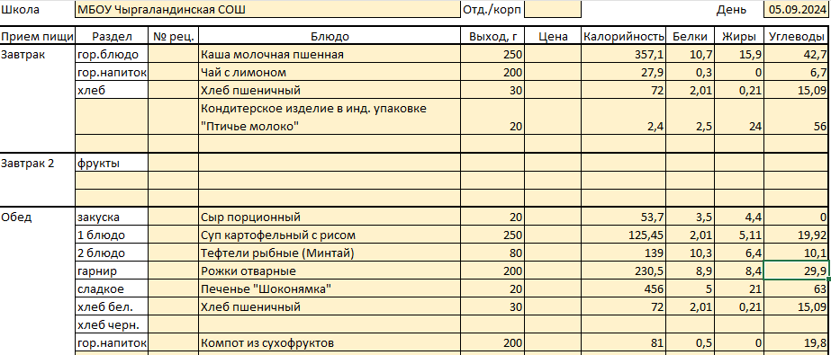 Меню на 24 сентября