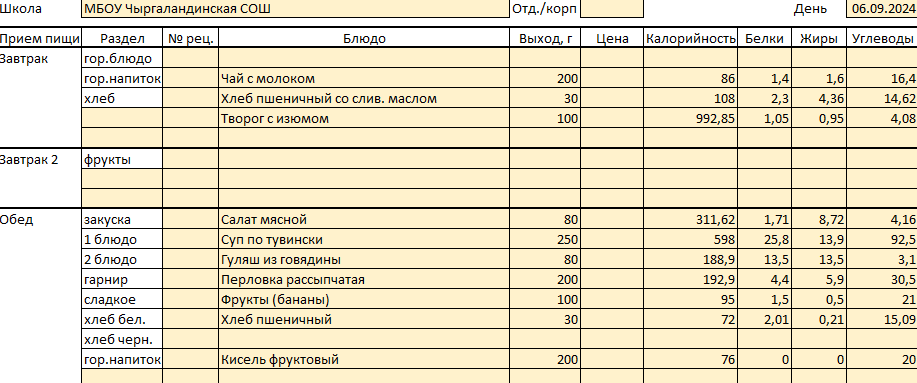 Меню на 6 сентября